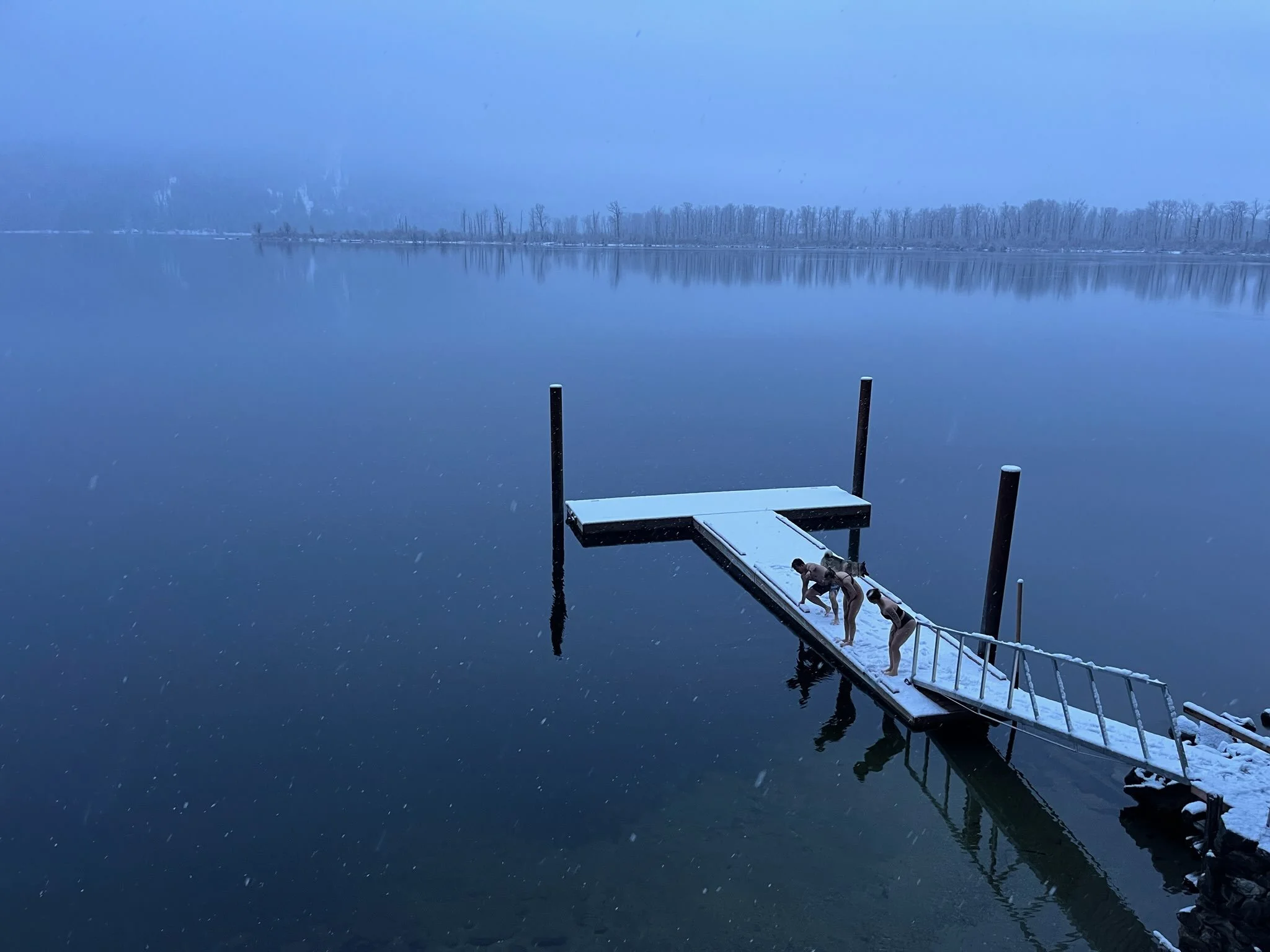 We flew from Louisville, KY to Seattle late Thursday night where we rented a car and headed straight to the mountains. Stevens Pass is about 2 hours from Seattle and about 40 minutes from Leavenworth. We were with a large group so we stayed in a very nice Airbnb on Lake Wenatchee which was about 30 minutes from the ski resort. If you’re lucky enough to get a lake view like we had, a nice cold plunge was a great little side quest!